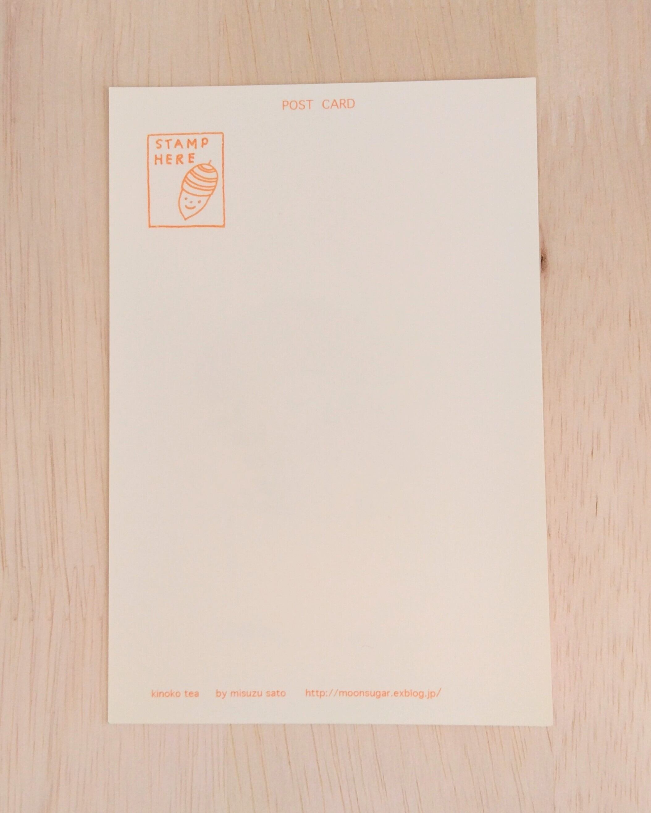 ティーカップに住むキノコ親子。彼らの話に耳を傾ければホッと温かな心地に。原画は水彩画。大切な人へのお便りや、インテリアの差し色にどうぞ。