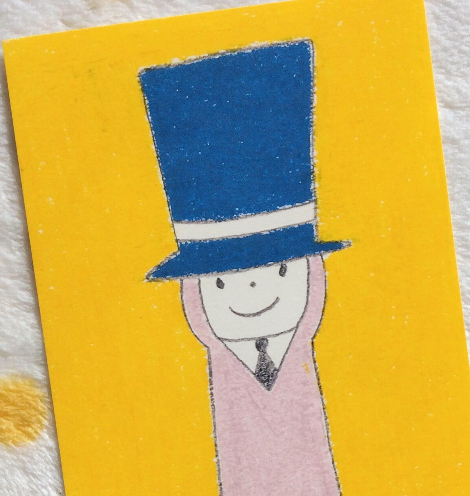 いつも優しい、ハット君のポストカードです。原画は鉛筆とクレパス。温かい色合いで、その場を穏やかに包みます。贈り物のメッセージや、お部屋のポイントにも。
